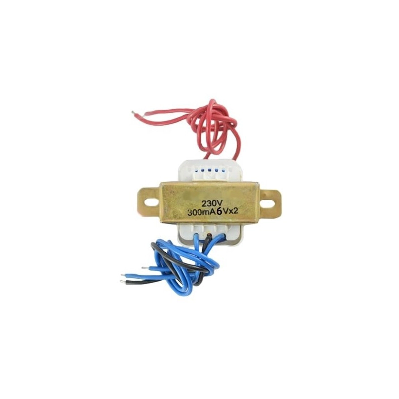 ترانس 6 ولت 300 میلی آمپر دوبل یا سه سیم، دارای هسته و روکش فلزی، یکی از اجزای ضروری در دنیای الکترونیک و رباتیک به شمار می‌آید.