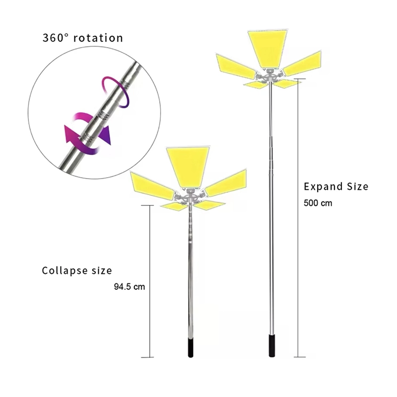 عمر مفید این چراغ بالغ بر 30000 ساعت گزارش شده است. پایه این محصول به‌صورت میله‌ای جمع‌شونده با طول 5 متر و از جنس آلیاژ آهن و آلومینیوم طراحی شده است که قابلیت تنظیم ارتفاع را نیز داراست.