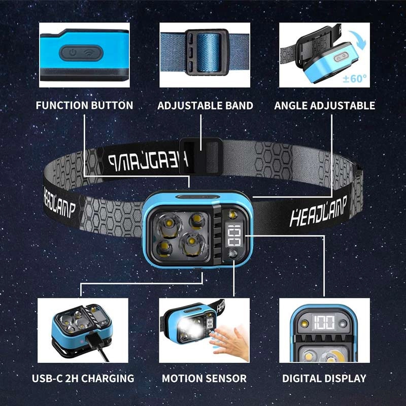 این مدل مجهز به یک سنسور حرکتی میباشد که کاربر را قادر میسازد تا بهراحتی آن را روشن یا خاموش کند. بند این چراغ قابلیت تنظیم سایز را دارد و بهخوبی روی سر قرار میگیرد، که این ویژگی از راحتی استفاده آن میکاهد.